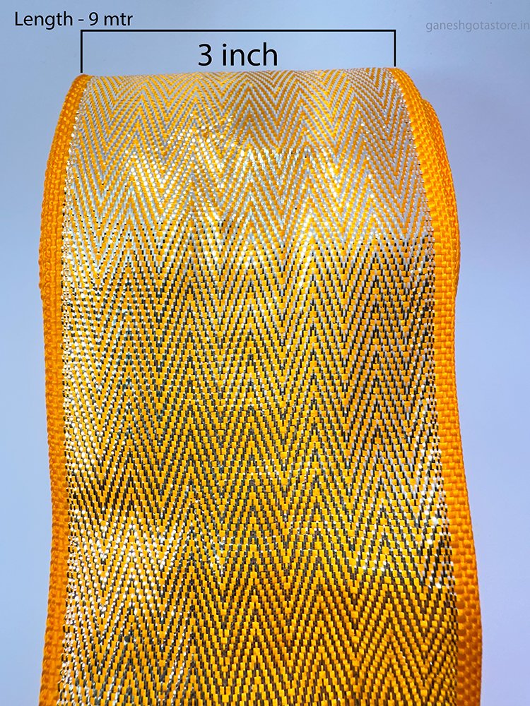 Elevate your ethnic creations with this Imitation Gota Lace in a bold 3-inch width and 9-meter roll. Perfect for adding a luxurious touch to lehenga borders, dupattas, sarees, blouses, festive décor, and craft projects, this lace features a rich golden shine that mimics real gota work at a budget-friendly price.